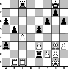 Partie-Notation im PGN-Format [Event "Schach dem Osterhasen XI"] [Site "www.mySchach.de"] [Date "2023.03.29"] [Round "1"] [White "deepsabel"] [Black "Leon"] [ECO "D02"] [WhitemyELO "1718"] [BlackmyELO "1681"] [Result "0-1"] [TimeControl "10/2592000"] [WhiteDays "112"] [BlackDays "118"] [MySchachNr "129653"] 1. d4 d5 2. Nf3 Nf6 3. c4 c6 4. Nc3 e6 5. Bg5 Be7 6. e3 O-O 7. Rc1 Nbd7 8. Bd3 dxc4 9. Bxc4 h6 10. Bh4 a6 11. O-O b5 12. Bd3 c5 13. Bb1 Bb7 14. Qd3 cxd4 15. Nxd4 Qa5 16. a3 Ne5 17. Qc2 Ned7 18. Rfd1 Rfd8 19. Nde2 Rac8 20. Nd4 Qb6 21. Bg3 Be4 22. Qe2 Bxb1 23. Rxb1 Qb7 24. Qf3 Nc5 25. Qxb7 Nxb7 26. Rbc1 Na5 27. Nce2 Nc4 28. Rb1 Ne4 29. h3 e5 30. Nf3 f6 31. Rdc1 Ned2 32. Nxd2 Rxd2 33. b3 Rxe2 34. bxc4 Bxa3 0-1 Stellungs-Notation im FEN-Format 2r3k1/6p1/p4p1p/1p2p3/2P5/b3P1BP/4rPP1/1RR3K1 - - - 0 35 Geschlagene Figuren Weiss: Geschlagene Figuren Schwarz: Klicken Sie auf eine geschlagene Figur um den gewünschten Zug darzustellen!