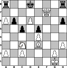 Partie-Notation im PGN-Format [Event "Ohne Schach ist alles nix"] [Site "www.mySchach.de"] [Date "2020.05.26"] [Round "1"] [White "alibengali"] [Black "Pilsfan"] [ECO "C41"] [WhitemyELO "1656"] [BlackmyELO "1495"] [Result "1-0"] [TimeControl "10/864000"] [WhiteDays "10"] [BlackDays "10"] [MySchachNr "118422"] 1. e4 e5 2. Nf3 d6 3. d4 Nc6 4. d5 Nce7 5. Nc3 Bg4 6. h3 Bxf3 7. Qxf3 h6 8. Be3 a6 9. b4 Nf6 10. b5 b6 11. bxa6 Qc8 12. Bb5+ Nd7 13. O-O Qd8 14. Qe2 Nc8 15. f4 Be7 16. fxe5 dxe5 17. Qh5 Bf6 18. Rf3 g6 19. Qg4 Be7 20. Raf1 Nd6 21. Rxf7 Nxf7 22. Qxg6 Bf6 23. Rxf6 Qxf6 24. Qxf6 c5 25. Bxd7+ Kxd7 26. Qxf7+ Kd8 27. d6 1-0 Stellungs-Notation im FEN-Format r2k3r/5Q2/Pp1P3p/2p1p3/4P3/2N1B2P/P1P3P1/6K1 - - - 0 27 Geschlagene Figuren Weiss: Geschlagene Figuren Schwarz: Klicken Sie auf eine geschlagene Figur um den gewünschten Zug darzustellen!