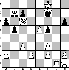 Partie-Notation im PGN-Format [Event "Herbst 2024"] [Site "www.mySchach.de"] [Date "2024.11.17"] [Round "1"] [White "deepsabel"] [Black "Lohl"] [ECO "D24"] [WhitemyELO "1793"] [BlackmyELO "1333"] [Result "1-0"] [TimeControl "10/2592000"] [WhiteDays "89"] [BlackDays "88"] [MySchachNr "132558"] 1. d4 d5 2. c4 dxc4 3. Nf3 Nf6 4. Nc3 Nc6 5. e4 e6 6. Bxc4 Bb4 7. O-O O-O 8. Re1 Re8 9. Bg5 h6 10. Bh4 Bxc3 11. bxc3 a6 12. e5 b5 13. Bd3 Bb7 14. exf6 gxf6 15. Qc2 Ne7 16. Bxf6 Bxf3 17. gxf3 Qd5 18. Bxe7 Rxe7 19. Be4 Qg5+ 20. Kh1 f6 21. Bxa8 Rg7 22. Rg1 Qh5 23. Rxg7+ Kxg7 24. Qe4 Qf7 25. Rg1+ Kf8 26. Bb7 f5 27. Qc6 e5 28. dxe5 1-0 Stellungs-Notation im FEN-Format 5k2/1Bp2q2/p1Q4p/1p2Pp2/8/2P2P2/P2P1P1P/6RK - - - 0 28 Geschlagene Figuren Weiss: Geschlagene Figuren Schwarz: Klicken Sie auf eine geschlagene Figur um den gewünschten Zug darzustellen!