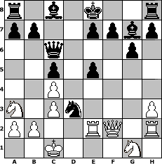 Partie-Notation im PGN-Format [Event "Ja, is denn heut scho Weihnachten?"] [Site "www.mySchach.de"] [Date "2014.12.06"] [Round "1"] [White "borsti"] [Black "haggard"] [ECO "B20"] [WhitemyELO "1235"] [BlackmyELO "1992"] [Result "0-1"] [TimeControl "10/2592000"] [WhiteDays "60"] [BlackDays "60"] [MySchachNr "97040"] 1. e4 c5 2. Bc4 Nc6 3. d3 g6 4. f4 Bg7 5. c3 Na5 6. Be3 Nxc4 7. dxc4 Qb6 8. Qc2 d6 9. Na3 Nf6 10. O-O-O Qc6 11. e5 Ng4 12. Re1 dxe5 13. h3 Nxe3 14. Qf2 Nxg2 15. Re2 Nxf4 16. Rh2 Nd3+ 0-1 Stellungs-Notation im FEN-Format r1b1k2r/pp2ppbp/2q3p1/2p1p3/2P5/N1Pn3P/PP2RQ1R/2K3N1 - kq - 2 17 Geschlagene Figuren Weiss: ![]() ![]() ![]() ![]() ![]() ![]() ![]() ![]() ![]() ![]() ![]() ![]() ![]() ![]() ![]() Geschlagene Figuren Schwarz: ![]() ![]() ![]() ![]() ![]() ![]() ![]() ![]() ![]() ![]() ![]() ![]() ![]() ![]() ![]() Klicken Sie auf eine geschlagene Figur um den gewünschten Zug darzustellen!