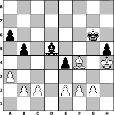 Partie-Notation im PGN-Format [Event "Eine zentrale Er"] [Site "www.mySchach.de"] [Date "2009.05.20"] [Round "2"] [White "rkoelbach"] [Black "ujack1961"] [ECO "C68"] [WhitemyELO "1481"] [BlackmyELO "1565"] [Result "1/2-1/2"] [TimeControl "10/2592000"] [WhiteDays "110"] [BlackDays "120"] [MySchachNr "55947"] 1. e4 e5 2. Nf3 Nc6 3. Bb5 a6 4. Bxc6 dxc6 5. O-O Bd6 6. d4 exd4 7. Qxd4 f6 8. e5 Bxe5 9. Qxd8+ Kxd8 10. Nxe5 fxe5 11. Bg5+ Nf6 12. Nd2 h6 13. Bh4 g5 14. Bg3 Re8 15. Rad1 Bd7 16. Nc4 e4 17. h4 gxh4 18. Bxh4 Re6 19. Ne3 Ke8 20. Rd2 Nd5 21. Nxd5 cxd5 22. Rxd5 Bc6 23. Rdd1 Rd6 24. Bg3 Rxd1 25. Rxd1 Rd8 26. Rxd8+ Kxd8 27. Bf4 h5 28. a3 Bd5 29. Kh2 Ke7 30. Bxc7 Kf6 31. Kg3 Kg5 32. Bf4+ Kg6 33. Kh4 b5 1/2-1/2 Stellungs-Notation im FEN-Format 8/8/p5k1/1p1b3p/4pB1K/P7/1PP1PPP1/8 - - - 0 34 Geschlagene Figuren Weiss: Geschlagene Figuren Schwarz: Klicken Sie auf eine geschlagene Figur um den gewünschten Zug darzustellen!