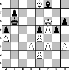 Partie-Notation im PGN-Format [Event "Schach-Romantik mit Philidor"] [Site "www.mySchach.de"] [Date "2009.01.14"] [Round "1"] [White "Sherlock6834"] [Black "beowulf"] [ECO "C41"] [WhitemyELO "1617"] [BlackmyELO "1482"] [Result "1-0"] [TimeControl "10/2592000"] [WhiteDays "120"] [BlackDays "119"] [MySchachNr "51628"] 1. e4 e5 2. Nf3 d6 3. Bc4 Nf6 4. Nc3 c6 5. d4 Bg4 6. h3 Bxf3 7. gxf3 Be7 8. Be3 Nbd7 9. Qd2 Qc7 10. Rg1 g6 11. f4 exd4 12. Bxd4 Rf8 13. O-O-O O-O-O 14. f5 Ne5 15. Bxe5 dxe5 16. Qe3 Rxd1+ 17. Nxd1 Kb8 18. f3 Nh5 19. Kb1 Nf4 20. Nf2 g5 21. Rd1 f6 22. Be6 Rd8 23. Qe1 Rxd1+ 24. Qxd1 Qd6 25. Qxd6+ Bxd6 26. Bc4 Bc5 27. Nd3 Nxd3 28. cxd3 Kc7 29. Kc2 Kd6 30. Bf7 Bd4 31. b4 c5 32. Kb3 cxb4 33. Kxb4 Kc6 34. Be8+ Kb6 35. Kc4 a5 36. a4 h6 37. Kd5 Bc5 38. Ke6 Bf8 39. Kxf6 1-0 Stellungs-Notation im FEN-Format 4Bb2/1p6/1k3K1p/p3pPp1/P3P3/3P1P1P/4P3/8 - - - 0 39 Geschlagene Figuren Weiss: Geschlagene Figuren Schwarz: Klicken Sie auf eine geschlagene Figur um den gewünschten Zug darzustellen!