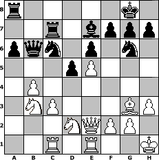 Partie-Notation im PGN-Format [Event "Fr"] [Site "www.mySchach.de"] [Date "2017.02.25"] [Round "1"] [White "UPS"] [Black "FrankB"] [ECO "C02"] [WhitemyELO "1668"] [BlackmyELO "1690"] [Result "1/2-1/2"] [TimeControl "10/2592000"] [WhiteDays "77"] [BlackDays "88"] [MySchachNr "107170"] 1. e4 e6 2. d4 d5 3. e5 c5 4. c3 Ne7 5. Nf3 Nec6 6. Bb5 Nd7 7. O-O Qb6 8. Ba4 Be7 9. dxc5 Bxc5 10. Qe2 O-O 11. b4 Be7 12. Be3 Qc7 13. Bf4 a6 14. a3 b5 15. Bc2 Re8 16. Re1 Nf8 17. a4 bxa4 18. Bxa4 Bb7 19. Nbd2 Rec8 20. h3 Ng6 21. Bg3 Nd8 22. Rac1 Bc6 23. Bxc6 Nxc6 24. Nb3 Qb6 25. Kh1 Rc7 26. Nfd2 1/2-1/2 Stellungs-Notation im FEN-Format r5k1/2r1bppp/pqn1p1n1/3pP3/1P6/1NP3BP/3NQPP1/2R1R2K - - - 5 26 Geschlagene Figuren Weiss: Geschlagene Figuren Schwarz: Klicken Sie auf eine geschlagene Figur um den gewünschten Zug darzustellen!