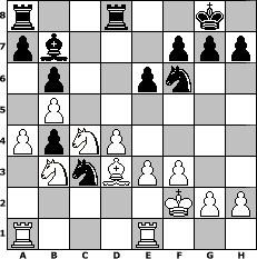Partie-Notation im PGN-Format [Event "Albspiele III"] [Site "www.mySchach.de"] [Date "2010.02.21"] [Round "1"] [White "Naunhofer"] [Black "Ziegert"] [ECO "A00"] [WhitemyELO "1560"] [BlackmyELO "1537"] [Result "1/2-1/2"] [TimeControl "10/2592000"] [WhiteDays "30"] [BlackDays "26"] [MySchachNr "63479"] 1. b4 e6 2. Bb2 Nf6 3. b5 b6 4. d3 d5 5. Nf3 c6 6. a4 Bb7 7. c4 dxc4 8. d4 Bb4+ 9. Bc3 Qd6 10. Bxb4 Qxb4+ 11. Qd2 c5 12. Ne5 Ne4 13. Qxb4 cxb4 14. Nxc4 O-O 15. f3 Nf6 16. Nbd2 Rd8 17. Nb3 Nd5 18. e3 Nd7 19. Kf2 N7f6 20. Bd3 Nc3 21. Rhe1 1/2-1/2 Stellungs-Notation im FEN-Format r2r2k1/pb3ppp/1p2pn2/1P6/PpNP4/1NnBPP2/5KPP/R3R3 - - - 6 21 Geschlagene Figuren Weiss: Geschlagene Figuren Schwarz: Klicken Sie auf eine geschlagene Figur um den gewünschten Zug darzustellen!