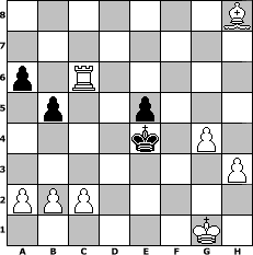 Partie-Notation im PGN-Format [Event "CM-Turnier-1-2014"] [Site "www.mySchach.de"] [Date "2014.01.11"] [Round "1"] [White "Mayerhofer"] [Black "balesbenk1"] [ECO "C22"] [WhitemyELO "1500"] [BlackmyELO "1509"] [Result "1-0"] [TimeControl "10/2592000"] [WhiteDays "30"] [BlackDays "28"] [MySchachNr "92290"] 1. e4 e5 2. d4 exd4 3. Qxd4 Nc6 4. Qe3 d6 5. Bb5 Nge7 6. h3 Bd7 7. Ne2 a6 8. Bxc6 Bxc6 9. O-O Bb5 10. Nbc3 Bxe2 11. Nxe2 Nc6 12. Qb3 Rb8 13. Qc3 h6 14. Nf4 Ne5 15. Nh5 f6 16. f4 Nd7 17. Qg3 Qe7 18. e5 dxe5 19. fxe5 fxe5 20. Be3 g5 21. Qg4 Bg7 22. Rad1 Rg8 23. Qc4 Rf8 24. Nxg7+ Qxg7 25. Qe6+ Qe7 26. Qxh6 Rf6 27. Qh5+ Qf7 28. Qxf7+ Kxf7 29. Rxd7+ Kg6 30. Rxf6+ Kxf6 31. Rxc7 b5 32. Rc6+ Kf5 33. g4+ Ke4 34. Bxg5 Rg8 35. Bf6 Rh8 36. Bxh8 1-0 Stellungs-Notation im FEN-Format 7B/8/p1R5/1p2p3/4k1P1/7P/PPP5/6K1 - - - 0 36 Geschlagene Figuren Weiss: Geschlagene Figuren Schwarz: Klicken Sie auf eine geschlagene Figur um den gewünschten Zug darzustellen!