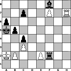 Partie-Notation im PGN-Format [Event "Marshall\'s Chess Divan"] [Site "www.mySchach.de"] [Date "2021.11.11"] [Round "1"] [White "wolni55"] [Black "deepsabel"] [ECO "C63"] [WhitemyELO "1388"] [BlackmyELO "1663"] [Result "0-1"] [TimeControl "10/2592000"] [WhiteDays "164"] [BlackDays "172"] [MySchachNr "123465"] 1. e4 e5 2. Nf3 Nc6 3. Bb5 f5 4. Bxc6 dxc6 5. Nxe5 Qd4 6. Qh5+ g6 7. Nxg6 hxg6 8. Qxg6+ Kd8 9. d3 Bd6 10. Bg5+ Ne7 11. Bf6 Qb4+ 12. Nd2 Re8 13. exf5 Qf4 14. g4 Kd7 15. Qg5 Qxg5 16. Bxg5 Nxf5+ 17. Ne4 Nd4 18. O-O-O Rf8 19. h4 Nf3 20. Rh3 Nxg5 21. hxg5 Bf4+ 22. Kb1 Kd8 23. Rh4 b6 24. Rdh1 Be6 25. Rh8 Kd7 26. R8h7+ Kc8 27. Rh8 Kb7 28. R8h4 Bd5 29. g6 Rg8 30. g5 Bxe4 31. dxe4 Bxg5 32. Rg4 Bf6 33. Rh5 Rae8 34. f3 c5 35. Rf4 Rxg6 36. a3 Bd4 37. c3 Bf2 38. Rf7 Bg3 39. Rhf5 Bd6 40. Rh7 c4 41. Rhh5 Reg8 42. e5 Bxa3 43. Ka2 Bc5 44. Rf7 R8g7 45. e6 Rxf7 46. exf7 Rf6 47. Rh7 Rxf3 48. Rg7 Rf2 49. Rh7 a6 50. Rg7 b5 51. Rh7 Kb6 52. Rg7 Ka5 53. Rh7 Bf8 0-1 Stellungs-Notation im FEN-Format 5b2/2p2P1R/p7/kp6/2p5/2P5/KP2Pr2/8 - - - 6 54 Geschlagene Figuren Weiss: ![]() ![]() ![]() ![]() ![]() ![]() ![]() ![]() ![]() ![]() ![]() ![]() ![]() ![]() ![]() Geschlagene Figuren Schwarz: ![]() ![]() ![]() ![]() ![]() ![]() ![]() ![]() ![]() ![]() ![]() ![]() ![]() ![]() ![]() Klicken Sie auf eine geschlagene Figur um den gewünschten Zug darzustellen!