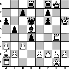 Partie-Notation im PGN-Format [Event "Dabei ist alles 6"] [Site "www.mySchach.de"] [Date "2009.03.21"] [Round "1"] [White "SlowBrain"] [Black "gunni50"] [ECO "C55"] [WhitemyELO "1403"] [BlackmyELO "1308"] [Result "1-0"] [TimeControl "10/864000"] [WhiteDays "10"] [BlackDays "10"] [MySchachNr "54074"] 1. e4 e5 2. Nf3 Nc6 3. Bc4 Nf6 4. O-O Bd6 5. Nc3 O-O 6. d3 a6 7. a3 b5 8. Ba2 Bb7 9. Bg5 Be7 10. Nd5 Nd4 11. Nxe7+ Qxe7 12. c3 Nxf3+ 13. Qxf3 Rad8 14. Rfe1 d5 15. exd5 h6 16. Bxf6 gxf6 17. d4 Qd6 18. Qg4+ Kh8 19. Qh5 exd4 20. Qxh6+ Kg8 21. Re4 Bxd5 22. Rg4# 1-0 Stellungs-Notation im FEN-Format 3r1rk1/2p2p2/p2q1p1Q/1p1b4/3p2R1/P1P5/BP2PPPP/R5K1 - - - 1 22 Geschlagene Figuren Weiss: Geschlagene Figuren Schwarz: Klicken Sie auf eine geschlagene Figur um den gewünschten Zug darzustellen!
