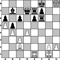 Partie-Notation im PGN-Format [Event "F"] [Site "www.mySchach.de"] [Date "2017.08.16"] [Round "1"] [White "Erich"] [Black "Joschi"] [ECO "B12"] [WhitemyELO "2162"] [BlackmyELO "1628"] [Result "1-0"] [TimeControl "10/2592000"] [WhiteDays "120"] [BlackDays "120"] [MySchachNr "109213"] 1. e4 c6 2. d4 d5 3. Nd2 dxe4 4. Nxe4 Nd7 5. Nf3 Ngf6 6. Nxf6+ Nxf6 7. Bc4 e6 8. O-O Be7 9. c3 O-O 10. Qe2 b5 11. Bd3 Bb7 12. Rd1 a6 13. Bf4 Qb6 14. a4 Rfd8 15. a5 Qa7 16. b4 Nd5 17. Bd2 Bd6 18. Ng5 h6 19. Bh7+ Kf8 20. Ne4 Qb8 21. Nxd6 Qxd6 22. Bc2 Re8 23. Re1 Re7 24. Qd3 Nf6 25. Re5 Ke8 26. Bf4 Qd7 27. Bg3 Kf8 28. Rae1 Rae8 29. Bh4 g5 30. Bg3 Kg7 31. f4 Rh8 32. fxg5 hxg5 33. Rxg5+ Kf8 34. Be5 Rh6 35. Bxf6 Rxf6 36. Rg8+ Kxg8 37. Qh7+ Kf8 38. Qh8# 1-0 Stellungs-Notation im FEN-Format 5k1Q/1b1qrp2/p1p1pr2/Pp6/1P1P4/2P5/2B3PP/4R1K1 - - - 3 38 Geschlagene Figuren Weiss: Geschlagene Figuren Schwarz: Klicken Sie auf eine geschlagene Figur um den gewünschten Zug darzustellen!