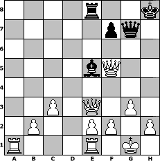 Partie-Notation im PGN-Format [Event "Sweschnikow III"] [Site "www.mySchach.de"] [Date "2012.09.05"] [Round "1"] [White "Steffi"] [Black "Sanji"] [ECO "B33"] [WhitemyELO "1618"] [BlackmyELO "1513"] [Result "1-0"] [TimeControl "10/1728000"] [WhiteDays "01"] [BlackDays "17"] [MySchachNr "83750"] 1. e4 c5 2. Nf3 Nc6 3. d4 cxd4 4. Nxd4 Nf6 5. Nc3 e5 6. Ndb5 d6 7. Bg5 a6 8. Na3 b5 9. Bxf6 gxf6 10. Nd5 f5 11. exf5 Bxf5 12. Qf3 Nd4 13. Nf6+ Qxf6 14. Qxa8+ Kd7 15. c3 Nc2+ 16. Nxc2 Bxc2 17. Qxa6 Bh6 18. Bxb5+ Ke7 19. O-O Rg8 20. Qb7+ Kf8 21. Rfe1 e4 22. Qc8+ Kg7 23. Qh3 Kh8 24. Bc6 Qg6 25. a4 Bf4 26. a5 Bb3 27. Bxe4 Qg7 28. a6 Be6 29. Qf3 Be5 30. a7 Bg4 31. Qe3 d5 32. a8=Q Bc8 33. Qxd5 Be6 34. Qdd3 Bf5 35. g3 Bh3 36. Bxh7 Re8 37. Bf5 Bxf5 38. Qxf5 1-0 Stellungs-Notation im FEN-Format 4r2k/5pq1/8/4bQ2/8/2P1Q1P1/1P2PP1P/R3R1K1 - - - 0 38 Geschlagene Figuren Weiss: Geschlagene Figuren Schwarz: Klicken Sie auf eine geschlagene Figur um den gewünschten Zug darzustellen!