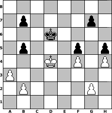 Partie-Notation im PGN-Format [Event "2010 wird gut!"] [Site "www.mySchach.de"] [Date "2010.01.08"] [Round "1"] [White "Tomino"] [Black "brucybabe"] [ECO "D02"] [WhitemyELO "1744"] [BlackmyELO "1661"] [Result "1/2-1/2"] [TimeControl "10/864000"] [WhiteDays "08"] [BlackDays "10"] [MySchachNr "62189"] 1. d4 d5 2. Nf3 Nf6 3. Bf4 c6 4. e3 e6 5. Nbd2 Bd6 6. Ne5 Qc7 7. Ndf3 Nbd7 8. Nxd7 Nxd7 9. Bxd6 Qxd6 10. Be2 O-O 11. O-O e5 12. dxe5 Nxe5 13. c4 Nxf3+ 14. Bxf3 Rd8 15. cxd5 cxd5 16. Qb3 Be6 17. Rfd1 Qb6 18. Qxb6 axb6 19. a3 Rd7 20. Rac1 Rad8 21. Rd4 Kf8 22. Rc3 Rd6 23. Rc7 R8d7 24. Rxd7 Rxd7 25. e4 dxe4 26. Rxd7 Bxd7 27. Bxe4 Bc6 28. f3 Ke7 29. Kf2 Ke6 30. Ke3 Bxe4 31. Kxe4 f5+ 32. Kd4 Kd6 33. f4 b5 34. h3 h5 35. h4 1/2-1/2 Stellungs-Notation im FEN-Format 8/1p4p1/3k4/1p3p1p/3K1P1P/P7/1P4P1/8 - - - 0 35 Geschlagene Figuren Weiss: Geschlagene Figuren Schwarz: Klicken Sie auf eine geschlagene Figur um den gewünschten Zug darzustellen!