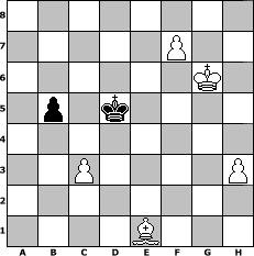 Partie-Notation im PGN-Format [Event "mal was andres"] [Site "www.mySchach.de"] [Date "2008.12.19"] [Round "1"] [White "Helmut48"] [Black "rikilatic"] [ECO "C23"] [WhitemyELO "1393"] [BlackmyELO "1295"] [Result "1-0"] [TimeControl "10/2592000"] [WhiteDays "180"] [BlackDays "140"] [MySchachNr "50822"] 1. e4 e5 2. Bc4 Qf6 3. Qf3 Nc6 4. c3 Bc5 5. d3 h6 6. b4 g5 7. bxc5 a6 8. Qxf6 Nxf6 9. h3 Na5 10. Nd2 Nxc4 11. Nxc4 b5 12. Nxe5 Bb7 13. Ngf3 d6 14. cxd6 cxd6 15. Ng4 Nd7 16. O-O h5 17. Ngh2 f6 18. Ba3 Ke7 19. Nd4 Ne5 20. Rfd1 Kd7 21. f3 Rac8 22. Rac1 d5 23. Nf1 g4 24. f4 Nf7 25. Nf5 gxh3 26. gxh3 Rcg8+ 27. Kh2 Nh6 28. Nxh6 Rxh6 29. f5 Rh7 30. Ne3 dxe4 31. dxe4+ Kc8 32. Nd5 Bxd5 33. exd5 Rhg7 34. Rc2 Rg5 35. Rf2 Rg3 36. Bb4 Re3 37. d6 Kd7 38. Rg2 Rxg2+ 39. Kxg2 Re2+ 40. Kg3 Rxa2 41. Re1 a5 42. Re7+ Kd8 43. Bc5 Rd2 44. Bb6+ Kc8 45. d7+ Rxd7 46. Rxd7 Kxd7 47. Bxa5 Kd6 48. Kf4 Kd5 49. Bb4 h4 50. Kg4 Ke4 51. Be7 Ke5 52. Bd8 Kd6 53. Bxf6 Kc5 54. Bxh4 Kc4 55. Be1 Kd5 56. Kg5 Kd6 57. f6 Ke6 58. Kg6 Kd5 59. f7 1-0 Stellungs-Notation im FEN-Format 8/5P2/6K1/1p1k4/8/2P4P/8/4B3 - - - 0 59 Geschlagene Figuren Weiss: Geschlagene Figuren Schwarz: Klicken Sie auf eine geschlagene Figur um den gewünschten Zug darzustellen!