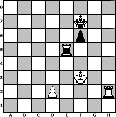 Partie-Notation im PGN-Format [Event "Winterende2014"] [Site "www.mySchach.de"] [Date "2014.03.06"] [Round "2"] [White "Kyros537"] [Black "lasker"] [ECO "D00"] [WhitemyELO "1456"] [BlackmyELO "1155"] [Result "1/2-1/2"] [TimeControl "10/1728000"] [WhiteDays "119"] [BlackDays "061"] [MySchachNr "93430"] 1. d4 d5 2. e3 e6 3. a3 c5 4. Nf3 cxd4 5. Nxd4 Nc6 6. Bb5 Bd7 7. Bxc6 bxc6 8. O-O Be7 9. Re1 c5 10. Nf3 Nf6 11. Nc3 O-O 12. e4 dxe4 13. Nxe4 Bc6 14. Qxd8 Rfxd8 15. Nxf6+ Bxf6 16. c3 Rd7 17. Be3 Be7 18. Ne5 Rc7 19. Rad1 Bd5 20. Bf4 Rcc8 21. c4 Bc6 22. Rd3 f6 23. Nxc6 Rxc6 24. Rd1 e5 25. Be3 Rc7 26. h3 Kf7 27. g4 h6 28. f4 exf4 29. Bxf4 Rb7 30. Rf1 Rxb2 31. g5 hxg5 32. Bxg5 Rh8 33. Bc1 Rb7 34. Rf5 Rb1 35. Rf1 Rh4 36. Kg2 Rxc4 37. Be3 Rc2+ 38. Rf2 Rxf2+ 39. Bxf2 Rb2 40. Rd7 Ke6 41. Rxa7 c4 42. Rc7 Bd6 43. Rxc4 Ra2 44. h4 Rxa3 45. Rg4 Ra2 46. Kf3 Ra3+ 47. Kg2 Kf7 48. h5 Ra5 49. Rh4 Rg5+ 50. Kf3 Rf5+ 51. Ke2 Bc5 52. Bxc5 Rxc5 53. h6 gxh6 54. Rxh6 Kg7 55. Rh3 Kf7 56. Rh6 Re5+ 57. Kf3 Kg7 58. Rh2 Kf7 1/2-1/2 Stellungs-Notation im FEN-Format 8/5k2/5p2/4r3/8/5K2/3P3R/8 - - - 9 59 Geschlagene Figuren Weiss: Geschlagene Figuren Schwarz: Klicken Sie auf eine geschlagene Figur um den gewünschten Zug darzustellen!