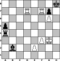 Partie-Notation im PGN-Format [Event "Fr"] [Site "www.mySchach.de"] [Date "2008.02.07"] [Round "1"] [White "Schefsche"] [Black "Juliette2103"] [ECO "C21"] [WhitemyELO "1421"] [BlackmyELO "1559"] [Result "1-0"] [TimeControl "10/2592000"] [WhiteDays "88"] [BlackDays "11"] [MySchachNr "42375"] 1. e4 e5 2. d4 exd4 3. Bd3 Bc5 4. Nf3 Nc6 5. O-O d6 6. c3 Nge7 7. Bg5 dxc3 8. Nxc3 h6 9. Bxe7 Qxe7 10. Nd5 Qd7 11. Bb5 a6 12. Bxc6 bxc6 13. Nc3 O-O 14. h3 Rb8 15. b3 f5 16. e5 dxe5 17. Nxe5 Qxd1 18. Raxd1 Bb7 19. Nd7 Bb4 20. Nxb8 Rxb8 21. Na4 c5 22. Rd7 Bc6 23. Rxc7 Bxa4 24. bxa4 a5 25. Rd1 Rb6 26. Rdd7 Rg6 27. f3 Kh8 28. Kf2 Ba3 29. g4 f4 30. h4 c4 31. Rxc4 Rb6 32. Rxf4 Rb2+ 33. Kg3 Rxa2 34. Rff7 Bb2 35. g5 hxg5 36. hxg5 Rxa4 37. g6 1-0 Stellungs-Notation im FEN-Format 7k/3R1Rp1/6P1/p7/r7/5PK1/1b2P3/8 - - - 0 37 Geschlagene Figuren Weiss: ![]() ![]() ![]() ![]() ![]() ![]() ![]() ![]() ![]() ![]() ![]() ![]() ![]() ![]() ![]() Geschlagene Figuren Schwarz: ![]() ![]() ![]() ![]() ![]() ![]() ![]() ![]() ![]() ![]() ![]() ![]() ![]() ![]() ![]() Klicken Sie auf eine geschlagene Figur um den gewünschten Zug darzustellen!