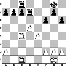 Partie-Notation im PGN-Format [Event "Einer wird gewinnen."] [Site "www.mySchach.de"] [Date "2020.06.10"] [Round "1"] [White "beowulf"] [Black "Pilsfan"] [ECO "A10"] [WhitemyELO "1435"] [BlackmyELO "1488"] [Result "1/2-1/2"] [TimeControl "10/2592000"] [WhiteDays "90"] [BlackDays "90"] [MySchachNr "118593"] 1. c4 Nc6 2. d4 d5 3. Nf3 h6 4. Nc3 e6 5. e3 Bb4 6. Bd2 Bxc3 7. Bxc3 Nf6 8. Qc2 Ne4 9. Bd3 Nxc3 10. Qxc3 Qe7 11. O-O Qb4 12. cxd5 Qxc3 13. bxc3 exd5 14. c4 dxc4 15. Bxc4 O-O 16. d5 Na5 17. Rac1 Bd7 18. Ne5 Nxc4 19. Nxd7 Rfd8 20. Rxc4 Rxd7 21. e4 f6 22. Rfc1 Rc8 1/2-1/2 Stellungs-Notation im FEN-Format 2r3k1/pppr2p1/5p1p/3P4/2R1P3/8/P4PPP/2R3K1 - - - 2 23 Geschlagene Figuren Weiss: Geschlagene Figuren Schwarz: Klicken Sie auf eine geschlagene Figur um den gewünschten Zug darzustellen!