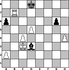 Partie-Notation im PGN-Format [Event "Mitten ins Gr"] [Site "www.mySchach.de"] [Date "2015.05.11"] [Round "1"] [White "borsti"] [Black "beowulf"] [ECO "B20"] [WhitemyELO "1334"] [BlackmyELO "1347"] [Result "1-0"] [TimeControl "10/1728000"] [WhiteDays "99"] [BlackDays "83"] [MySchachNr "99178"] 1. e4 c5 2. d4 cxd4 3. Qxd4 Nc6 4. Qd1 Nf6 5. Nc3 e6 6. Bg5 Be7 7. Nf3 O-O 8. Bh4 d5 9. e5 Nd7 10. Bg3 f6 11. Qe2 fxe5 12. Nxe5 Ndxe5 13. Bxe5 Nxe5 14. Qxe5 Bf6 15. Qe3 Bd7 16. O-O-O a6 17. Bd3 Bc6 18. Qxe6+ Rf7 19. Bxh7+ Kxh7 20. Qxf7 Qd6 21. Qh5+ Kg8 22. Rhe1 Bxc3 23. bxc3 Qa3+ 24. Kb1 Qf8 25. Re3 Qxf2 26. Rg3 Qb6+ 27. Ka1 Rf8 28. Qg4 Rf7 29. Qe6 Qf2 30. Kb2 Qb6+ 31. Kc1 Qf2 32. Re1 Qf4+ 33. Kb2 Qc7 34. Rf3 d4 35. Rxf7 Qxf7 36. cxd4 Qxe6 37. Rxe6 Bxg2 38. Re7 Kf8 39. Rd7 g6 40. h4 Ke8 41. Rg7 Be4 42. c4 Kf8 43. Rc7 Ke8 44. d5 Bd3 45. Kc3 Kd8 46. Rxb7 1-0 Stellungs-Notation im FEN-Format 3k4/1R6/p5p1/3P4/2P4P/2Kb4/P7/8 - - - 0 46 Geschlagene Figuren Weiss: Geschlagene Figuren Schwarz: Klicken Sie auf eine geschlagene Figur um den gewünschten Zug darzustellen!