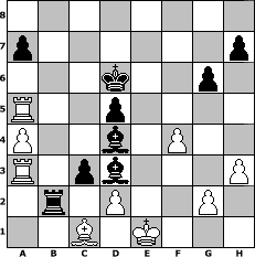 Partie-Notation im PGN-Format [Event "M"] [Site "www.mySchach.de"] [Date "2012.07.12"] [Round "1"] [White "sprinterde"] [Black "Tomino"] [ECO "A52"] [WhitemyELO "1713"] [BlackmyELO "1689"] [Result "0-1"] [TimeControl "10/3456000"] [WhiteDays "22"] [BlackDays "40"] [MySchachNr "82680"] 1. d4 Nf6 2. c4 e5 3. dxe5 Ng4 4. Nf3 Bc5 5. e3 Nc6 6. Nc3 O-O 7. Be2 Re8 8. O-O Ngxe5 9. Nxe5 Nxe5 10. Na4 Bf8 11. f4 Nc6 12. Bf3 d6 13. Nc3 Bd7 14. Qd5 Be6 15. Qb5 Rb8 16. Bxc6 bxc6 17. Qxc6 Qc8 18. Nd5 Rb7 19. Rd1 Bd7 20. Qa6 c6 21. Nc3 g6 22. e4 f5 23. exf5 Bxf5 24. Qa4 Qc7 25. Nd5 cxd5 26. Qxe8 dxc4 27. Qe3 Qc6 28. Re1 Bg7 29. a4 d5 30. Qe8+ Qxe8 31. Rxe8+ Kf7 32. Rd8 Be4 33. h3 Bd4+ 34. Kf1 Ke7 35. Rc8 Bf5 36. Rc6 Kd7 37. Ra6 Bd3+ 38. Ke1 c3 39. Ra5 Kd6 40. Ra3 Rxb2 0-1 Stellungs-Notation im FEN-Format 8/p6p/3k2p1/R2p4/P2b1P2/R1pb3P/1r1P2P1/2B1K3 - - - 0 41 Geschlagene Figuren Weiss: Geschlagene Figuren Schwarz: Klicken Sie auf eine geschlagene Figur um den gewünschten Zug darzustellen!