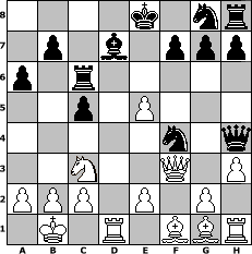 Partie-Notation im PGN-Format [Event "Schach dem Osterhasen VII"] [Site "www.mySchach.de"] [Date "2019.04.17"] [Round "1"] [White "Ziegert"] [Black "reisinger"] [ECO "C41"] [WhitemyELO "1597"] [BlackmyELO "1464"] [Result "0-1"] [TimeControl "10/2592000"] [WhiteDays "00"] [BlackDays "60"] [MySchachNr "114823"] 1. e4 e5 2. Nf3 d6 3. Nc3 Bd7 4. d4 exd4 5. Nxd4 Nc6 6. Be3 Ne5 7. Qd2 Be7 8. f4 Ng4 9. Bg1 c5 10. Ndb5 a6 11. Nxd6+ Bxd6 12. Qxd6 Rc8 13. O-O-O Rc7 14. h3 Rc6 15. Qd3 N4f6 16. e5 Nh5 17. Qf3 Qh4 18. Kb1 Nxf4 0-1 Stellungs-Notation im FEN-Format 4k1nr/1p1b1ppp/p1r5/2p1P3/5n1q/2N2Q1P/PPP1P1P1/1K1R1BBR - k - 0 19 Geschlagene Figuren Weiss: Geschlagene Figuren Schwarz: Klicken Sie auf eine geschlagene Figur um den gewünschten Zug darzustellen!