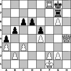 Partie eroeffnet am 12.11.2011, 00:01 Uhr und beendet am 02.12.2011, 12:10 Uhr Spieler weiss: Winston Spieler schwarz: faustballer Winston hat die Partie gewonnen! | |