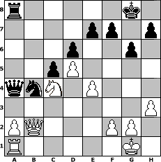 Partie-Notation im PGN-Format [Event "2010 wird gut!"] [Site "www.mySchach.de"] [Date "2010.01.08"] [Round "1"] [White "brucybabe"] [Black "Joschi"] [ECO "A57"] [WhitemyELO "1661"] [BlackmyELO "1588"] [Result "1/2-1/2"] [TimeControl "10/864000"] [WhiteDays "10"] [BlackDays "09"] [MySchachNr "62190"] 1. d4 Nf6 2. c4 c5 3. d5 b5 4. b3 bxc4 5. bxc4 g6 6. Bb2 Bg7 7. Qc2 Qa5+ 8. Nd2 d6 9. Ngf3 O-O 10. e3 Bf5 11. Bd3 Bxd3 12. Qxd3 Nbd7 13. O-O Rfb8 14. Rfb1 Rb6 15. Bc3 Qa6 16. Rxb6 axb6 17. Qc2 b5 18. cxb5 Qxb5 19. e4 Ng4 20. Bxg7 Kxg7 21. h3 Nge5 22. Nxe5 Nxe5 23. Qc3 Kg8 24. Qc2 Nd3 25. Nc4 Nb4 26. Qb3 Qa4 27. Qb2 Qb5 28. Qb3 Qa4 29. Qb2 1/2-1/2 Stellungs-Notation im FEN-Format r5k1/4pp1p/3p2p1/2pP4/qnN1P3/7P/PQ3PP1/R5K1 - - - 13 29 Geschlagene Figuren Weiss: Geschlagene Figuren Schwarz: Klicken Sie auf eine geschlagene Figur um den gewünschten Zug darzustellen!
