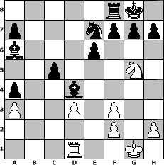 Partie-Notation im PGN-Format [Event "II. Intergalaktische Meisterschaft"] [Site "www.mySchach.de"] [Date "2008.09.08"] [Round "1"] [White "Haneken"] [Black "HenrySchinasky"] [ECO "B20"] [WhitemyELO "1506"] [BlackmyELO "2019"] [Result "0-1"] [TimeControl "10/2592000"] [WhiteDays "30"] [BlackDays "30"] [MySchachNr "47849"] 1. e4 c5 2. d3 e6 3. Nh3 Nc6 4. Bg5 Be7 5. Be2 Bxg5 6. Nc3 Bf6 7. Na4 Qa5+ 8. c3 d6 9. O-O b5 10. e5 Nxe5 11. Bf3 Rb8 12. b4 Qxa4 13. bxc5 dxc5 14. Qxa4 Nxf3+ 15. gxf3 bxa4 16. Rfe1 Bxc3 17. Rab1 Rb4 18. Rec1 Ba6 19. a3 Rxb1 20. Rxb1 Ne7 21. Rd1 O-O 22. Ng5 Bd4 0-1 Stellungs-Notation im FEN-Format 5rk1/p3nppp/b3p3/2p3N1/p2b4/P2P1P2/5P1P/3R2K1 - - - 5 23 Geschlagene Figuren Weiss: Geschlagene Figuren Schwarz: Klicken Sie auf eine geschlagene Figur um den gewünschten Zug darzustellen!