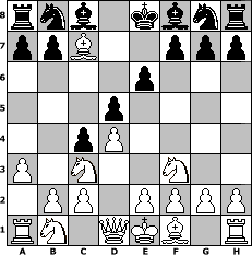 Partie-Notation im PGN-Format [Event "Mitten ins Gr"] [Site "www.mySchach.de"] [Date "2015.05.11"] [Round "1"] [White "lotchi"] [Black "Gauss1233"] [ECO "A00"] [WhitemyELO "1236"] [BlackmyELO "1407"] [Result "1-0"] [TimeControl "10/1728000"] [WhiteDays "19"] [BlackDays "19"] [MySchachNr "99174"] 1. Nc3 d5 2. d4 e6 3. Nf3 c5 4. Bg5 Qa5 5. a3 Qd8 6. Bxd8 c4 7. Bc7 1-0 Stellungs-Notation im FEN-Format rnb1kbnr/ppB2ppp/4p3/3p4/2pP4/P1N2N2/1PP1PPPP/RN1QKB1R - KQkq - 1 7 Geschlagene Figuren Weiss: Geschlagene Figuren Schwarz: Klicken Sie auf eine geschlagene Figur um den gewünschten Zug darzustellen!