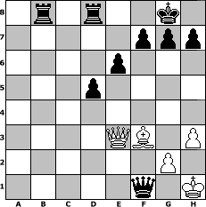 Partie-Notation im PGN-Format [Event "Winter 19/20"] [Site "www.mySchach.de"] [Date "2020.01.09"] [Round "2"] [White "Joschi"] [Black "Rotstift10"] [ECO "B32"] [WhitemyELO "1598"] [BlackmyELO "1612"] [Result "0-1"] [TimeControl "10/2592000"] [WhiteDays "120"] [BlackDays "103"] [MySchachNr "116953"] 1. e4 c5 2. Nf3 Nc6 3. d4 cxd4 4. Nxd4 Nxd4 5. Qxd4 e6 6. Bc4 Qf6 7. Qd3 Bb4+ 8. c3 Bc5 9. O-O Ne7 10. Be3 d6 11. Nd2 O-O 12. Rad1 a6 13. a3 Ng6 14. b4 Ne5 15. Qc2 Bxe3 16. fxe3 Qh6 17. Rde1 Ng4 18. Nf3 Nxe3 19. Rxe3 Qxe3+ 20. Kh1 b5 21. Bb3 Bb7 22. Re1 Qf4 23. Qd3 Rac8 24. c4 Rfd8 25. cxb5 axb5 26. Qxb5 Bxe4 27. Rf1 Qe3 28. Bd1 Qxa3 29. Be2 Rb8 30. Qc4 Bxf3 31. Bxf3 Qxb4 32. Qd3 d5 33. h3 Qc4 34. Qe3 Qxf1+ 0-1 Stellungs-Notation im FEN-Format 1r1r2k1/5ppp/4p3/3p4/8/4QB1P/6P1/5q1K - - - 0 35 Geschlagene Figuren Weiss: Geschlagene Figuren Schwarz: Klicken Sie auf eine geschlagene Figur um den gewünschten Zug darzustellen!