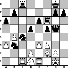 Partie-Notation im PGN-Format [Event "Mal wieder spielen 2"] [Site "www.mySchach.de"] [Date "2013.05.12"] [Round "1"] [White "Seneca"] [Black "Tomino"] [ECO "A45"] [WhitemyELO "1570"] [BlackmyELO "1690"] [Result "0-1"] [TimeControl "10/1728000"] [WhiteDays "58"] [BlackDays "27"] [MySchachNr "88286"] 1. d4 Nf6 2. e3 d5 3. Bd3 Bg4 4. f3 Bh5 5. Ne2 Bg6 6. Nbc3 Bxd3 7. cxd3 e6 8. O-O c5 9. Qb3 Qb6 10. Qa4+ Nc6 11. dxc5 Bxc5 12. d4 Be7 13. a3 O-O 14. Qc2 Rac8 15. b4 a6 16. Bb2 Qc7 17. Ng3 Ne8 18. Rac1 Nd6 19. Qb3 Nc4 20. Rfe1 Bd6 21. Re2 Bxg3 22. hxg3 Qxg3 23. Nd1 f5 24. Bc3 Rf6 25. Be1 Qg5 26. Bf2 Nxd4 27. Re1 Nxb3 0-1 Stellungs-Notation im FEN-Format 2r3k1/1p4pp/p3pr2/3p1pq1/1Pn5/Pn2PP2/3P1BP1/2RNR1K1 - - - 0 28 Geschlagene Figuren Weiss: Geschlagene Figuren Schwarz: Klicken Sie auf eine geschlagene Figur um den gewünschten Zug darzustellen!