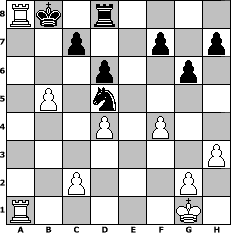 Partie-Notation im PGN-Format [Event "YOUR LAST BREATH"] [Site "www.mySchach.de"] [Date "2019.11.17"] [Round "1"] [White "martinus"] [Black "beowulf"] [ECO "A00"] [WhitemyELO "1718"] [BlackmyELO "1352"] [Result "1-0"] [TimeControl "10/3456000"] [WhiteDays "40"] [BlackDays "40"] [MySchachNr "116320"] 1. b4 e5 2. Bb2 Nc6 3. b5 Nb4 4. a3 Nd5 5. Bxe5 Qg5 6. Nf3 Qh5 7. e4 Nb6 8. Be2 d6 9. Bg3 Bg4 10. Nd4 Bxe2 11. Qxe2 Qxe2+ 12. Nxe2 Nf6 13. d3 O-O-O 14. Nbc3 Be7 15. O-O Rhe8 16. Nd4 Ng4 17. h3 Ne5 18. f4 Ned7 19. Nf5 g6 20. Ne3 Kb8 21. a4 Nc8 22. a5 b6 23. Ned5 Bf6 24. Nxf6 Nxf6 25. axb6 Nxb6 26. Ra6 Nfd7 27. Rfa1 Nc5 28. Rxa7 Kc8 29. Nd5 Nxd5 30. exd5 Kb8 31. d4 Ne4 32. Be1 Nf6 33. Bh4 Nxd5 34. Bxd8 Rxd8 35. Ra8+ 1-0 Stellungs-Notation im FEN-Format Rk1r4/2p2p1p/3p2p1/1P1n4/3P1P2/7P/2P3P1/R5K1 - - - 1 35 Geschlagene Figuren Weiss: Geschlagene Figuren Schwarz: Klicken Sie auf eine geschlagene Figur um den gewünschten Zug darzustellen!