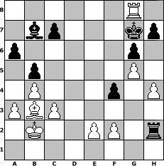 Partie-Notation im PGN-Format [Event "Pirc - Thematurnier"] [Site "www.mySchach.de"] [Date "2022.03.18"] [Round "1"] [White "wolni55"] [Black "Lohl"] [ECO "B07"] [WhitemyELO "1398"] [BlackmyELO "1584"] [Result "1-0"] [TimeControl "10/2592000"] [WhiteDays "119"] [BlackDays "111"] [MySchachNr "125015"] 1. e4 d6 2. d4 Nf6 3. Nc3 g6 4. h3 Bg7 5. Be3 O-O 6. Nf3 d5 7. e5 Ne4 8. Nxe4 dxe4 9. Nd2 Qd5 10. a3 Nc6 11. b4 Nxd4 12. Nc4 Bxe5 13. Nxe5 Qxe5 14. Qxd4 Qf5 15. Qc5 Qxc5 16. Bxc5 Re8 17. O-O-O b6 18. Be3 a6 19. Bc4 Bb7 20. g4 b5 21. Bb3 e6 22. c3 Rac8 23. Bc2 f5 24. g5 Rf8 25. h4 f4 26. Bd2 e3 27. Rhe1 exd2+ 28. Rxd2 Rfe8 29. Bb3 Kh8 30. Rxe6 Rxe6 31. Bxe6 Re8 32. Bb3 Re1+ 33. Kb2 Rh1 34. Rd7 Rh2 35. Rd8+ Kg7 36. Rg8# 1-0 Stellungs-Notation im FEN-Format 6R1/1bp3kp/p5p1/1p4P1/1P3p1P/PBP5/1K2PP1r/8 - - - 10 36 Geschlagene Figuren Weiss: Geschlagene Figuren Schwarz: Klicken Sie auf eine geschlagene Figur um den gewünschten Zug darzustellen!