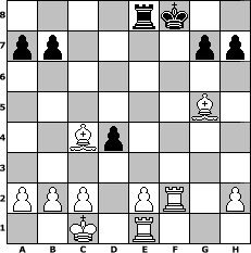 Partie-Notation im PGN-Format [Event "Fr"] [Site "www.mySchach.de"] [Date "2008.02.07"] [Round "2"] [White "Robert"] [Black "bluescreenlover"] [ECO "B27"] [WhitemyELO "1690"] [BlackmyELO "1219"] [Result "1-0"] [TimeControl "10/2592000"] [WhiteDays "47"] [BlackDays "55"] [MySchachNr "42413"] 1. e4 c5 2. Nf3 e5 3. Nxe5 d6 4. Nf3 Nc6 5. d4 d5 6. exd5 Qxd5 7. Nc3 Bg4 8. Nxd5 Bxf3 9. Qxf3 Nxd4 10. Nc7+ Kd7 11. Qxf7+ Be7 12. Qd5+ Bd6 13. Bf4 Rd8 14. Qxd6+ Kc8 15. Qxd8+ Kxd8 16. O-O-O Nf6 17. Ne6+ Ke7 18. Nxd4 cxd4 19. Bc4 Rd8 20. g4 Nxg4 21. Rhg1 Nxf2 22. Bg5+ Ke8 23. Rge1+ Kf8 24. Rd2 Re8 25. Rxf2# 1-0 Stellungs-Notation im FEN-Format 4rk2/pp4pp/8/6B1/2Bp4/8/PPP1PR1P/2K1R3 - - - 0 25 Geschlagene Figuren Weiss: ![]() ![]() ![]() ![]() ![]() ![]() ![]() ![]() ![]() ![]() ![]() ![]() ![]() ![]() ![]() Geschlagene Figuren Schwarz: ![]() ![]() ![]() ![]() ![]() ![]() ![]() ![]() ![]() ![]() ![]() ![]() ![]() ![]() ![]() Klicken Sie auf eine geschlagene Figur um den gewünschten Zug darzustellen!