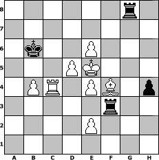 Partie-Notation im PGN-Format [Event "HIGHLAND QUEEN I 2012"] [Site "www.mySchach.de"] [Date "2012.03.01"] [Round "1"] [White "ClaudiaN"] [Black "muetoe"] [ECO "C68"] [WhitemyELO "1821"] [BlackmyELO "1797"] [Result "1-0"] [TimeControl "10/2592000"] [WhiteDays "30"] [BlackDays "22"] [MySchachNr "80255"] 1. e4 e5 2. Nf3 Nc6 3. Bb5 a6 4. Bxc6 dxc6 5. O-O Bg4 6. h3 h5 7. d3 Qf6 8. Nbd2 Ne7 9. Nc4 Bxf3 10. Qxf3 Qxf3 11. gxf3 Ng6 12. Be3 O-O-O 13. Kh2 Be7 14. a4 b6 15. Rg1 Rd7 16. Rxg6 fxg6 17. Nxe5 Bd6 18. f4 Bxe5 19. fxe5 Re8 20. Rg1 Re6 21. b4 Rd8 22. f4 Kb7 23. d4 Rde8 24. c4 b5 25. d5 R6e7 26. axb5 axb5 27. Rxg6 bxc4 28. Rxc6 g5 29. e6 gxf4 30. Bxf4 Ra8 31. Kg3 h4+ 32. Kf3 Ra3+ 33. Kg4 Rg7+ 34. Kf5 Rxh3 35. Kf6 Rg8 36. Rxc7+ Kb6 37. Rxc4 Rf3 38. Ke5 1-0 Stellungs-Notation im FEN-Format 6r1/8/1k2P3/3PK3/1PR1PB1p/5r2/4P3/8 - - - 2 38 Geschlagene Figuren Weiss: Geschlagene Figuren Schwarz: Klicken Sie auf eine geschlagene Figur um den gewünschten Zug darzustellen!
