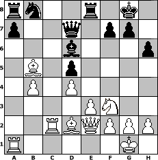 Partie-Notation im PGN-Format [Event "Gegen die Herbstdepression"] [Site "www.mySchach.de"] [Date "2008.12.01"] [Round "1"] [White "neve"] [Black "Helmut48"] [ECO "D20"] [WhitemyELO "1447"] [BlackmyELO "1394"] [Result "1-0"] [TimeControl "10/864000"] [WhiteDays "10"] [BlackDays "10"] [MySchachNr "50349"] 1. d4 d5 2. c4 dxc4 3. e3 b5 4. a4 Bd7 5. axb5 Bxb5 6. Nc3 Ba6 7. Rxa6 e6 8. Ra4 c6 9. Bxc4 Nf6 10. Nf3 h6 11. b4 Nd5 12. Nxd5 exd5 13. Bd3 Bd6 14. O-O O-O 15. Qe2 Qb6 16. Bd2 Re8 17. Rc1 Nd7 18. Ra6 Qd8 19. Raxc6 Qe7 20. Ra1 Nb8 21. Rc2 Qd7 22. Bb5 1-0 Stellungs-Notation im FEN-Format rn2r1k1/p2q1pp1/3b3p/1B1p4/1P1P4/4PN2/2RBQPPP/R5K1 - - - 6 22 Geschlagene Figuren Weiss: ![]() ![]() ![]() ![]() ![]() ![]() ![]() ![]() ![]() ![]() ![]() ![]() ![]() ![]() ![]() Geschlagene Figuren Schwarz: ![]() ![]() ![]() ![]() ![]() ![]() ![]() ![]() ![]() ![]() ![]() ![]() ![]() ![]() ![]() Klicken Sie auf eine geschlagene Figur um den gewünschten Zug darzustellen!