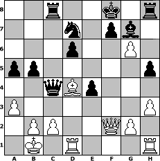 Partie-Notation im PGN-Format [Event "Sommeranfang 2013"] [Site "www.mySchach.de"] [Date "2013.06.21"] [Round "1"] [Board "1"] [White "HenrySchinasky"] [Black "nyffhans"] [ECO "B75"] [WhitemyELO "2126"] [BlackmyELO "2065"] [Result "1/2-1/2"] [TimeControl "10/2592000"] [WhiteDays "30"] [BlackDays "27"] [MySchachNr "88946"] 1. e4 c5 2. Nf3 d6 3. d4 cxd4 4. Nxd4 Nf6 5. Nc3 g6 6. Be3 Bg7 7. f3 a6 8. Qd2 Nbd7 9. O-O-O h5 10. Kb1 b5 11. Nc6 Qc7 12. Nb4 Bb7 13. h3 Rc8 14. Be2 Nb6 15. Bd4 Kf8 16. a3 Nfd7 17. f4 Nc4 18. Bxc4 Qxc4 19. Qf2 a5 20. Nbd5 Bxd5 21. Nxd5 e6 22. f5 exd5 23. fxg6 dxe4 1/2-1/2 Stellungs-Notation im FEN-Format 2r2k1r/3n1pb1/3p2P1/pp5p/2qBp3/P6P/1PP2QP1/1K1R3R - - - 0 24 Geschlagene Figuren Weiss: Geschlagene Figuren Schwarz: Klicken Sie auf eine geschlagene Figur um den gewünschten Zug darzustellen!