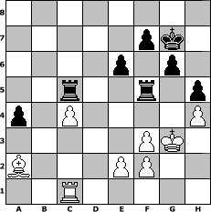 Partie-Notation im PGN-Format [Event "CAISSA.COM IS DEAD TO ME!"] [Site "www.mySchach.de"] [Date "2020.03.28"] [Round "2"] [White "lotchi"] [Black "Seneca"] [ECO "B07"] [WhitemyELO "1273"] [BlackmyELO "1570"] [Result "0-1"] [TimeControl "10/2592000"] [WhiteDays "30"] [BlackDays "20"] [MySchachNr "117724"] 1. e4 d6 2. d4 Nf6 3. Nc3 c6 4. Nf3 g6 5. Bd3 Bg7 6. O-O O-O 7. Bg5 a6 8. Bxf6 Bxf6 9. Re1 Bg7 10. d5 cxd5 11. exd5 Qa5 12. Qd2 Re8 13. a3 b5 14. Rab1 Bb7 15. Ra1 Bxc3 16. Qxc3 Qxc3 17. bxc3 Bxd5 18. a4 Bxf3 19. gxf3 bxa4 20. Re4 e6 21. Raxa4 d5 22. Reb4 Rc8 23. c4 a5 24. Rb1 dxc4 25. Bxc4 Nd7 26. Rd1 Nb6 27. Bb5 Nxa4 28. Bxa4 Rc4 29. Bb3 Rf4 30. Kg2 a4 31. Ba2 Kg7 32. Kg3 Rf5 33. c4 h5 34. h4 Rc8 35. Rc1 Rcc5 0-1 Stellungs-Notation im FEN-Format 8/5pk1/4p1p1/2r2r1p/p1P4P/5PK1/B3PP2/2R5 - - - 3 36 Geschlagene Figuren Weiss: Geschlagene Figuren Schwarz: Klicken Sie auf eine geschlagene Figur um den gewünschten Zug darzustellen!