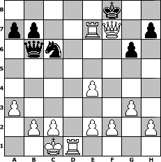 Partie-Notation im PGN-Format [Event "Fr"] [Site "www.mySchach.de"] [Date "2005.04.22"] [Round "1"] [White "Pinguin"] [Black "Armin1960"] [ECO "C41"] [WhitemyELO "1559"] [BlackmyELO "1629"] [Result "1-0"] [TimeControl "10/1728000"] [WhiteDays "28"] [BlackDays "58"] [MySchachNr "12289"] 1. e4 e5 2. Nf3 d6 3. d4 exd4 4. Nxd4 Be7 5. Nc3 Bg5 6. Bxg5 Qxg5 7. Nd5 Ne7 8. Nxc7+ Kf8 9. Nxa8 g6 10. g3 Kg7 11. Nc7 Qa5+ 12. Qd2 Qxc7 13. Nb5 Qb6 14. O-O-O Nbc6 15. Nxd6 Rd8 16. Qf4 Be6 17. Bc4 Rxd6 18. Rxd6 Bxc4 19. Qf6+ Kg8 20. a3 Be6 21. Rhd1 Kf8 22. Rxe6 Qc5 23. Rxe7 Qb6 24. Qxf7# 1-0 Stellungs-Notation im FEN-Format 5k2/pp2RQ1p/1qn3p1/8/4P3/P5P1/1PP1PP1P/2KR4 - - - 0 24 Geschlagene Figuren Weiss: ![]() ![]() ![]() ![]() ![]() ![]() ![]() ![]() ![]() ![]() ![]() ![]() ![]() ![]() ![]() Geschlagene Figuren Schwarz: ![]() ![]() ![]() ![]() ![]() ![]() ![]() ![]() ![]() ![]() ![]() ![]() ![]() ![]() ![]() Klicken Sie auf eine geschlagene Figur um den gewünschten Zug darzustellen!