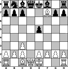 Partie-Notation im PGN-Format [Event "Sommersonne "] [Site "www.mySchach.de"] [Date "2016.05.14"] [Round "1"] [White "Attila89"] [Black "Ziegert"] [ECO "C42"] [WhitemyELO "1580"] [BlackmyELO "1433"] [Result "1-0"] [TimeControl "10/2592000"] [WhiteDays "30"] [BlackDays "03"] [MySchachNr "103610"] 1. e4 e5 2. Nf3 Nf6 3. Bc4 Nxe4 4. Nc3 Nxc3 5. dxc3 d6 6. Nxe5 dxe5 7. Bxf7+ 1-0 Stellungs-Notation im FEN-Format rnbqkb1r/ppp2Bpp/8/4p3/8/2P5/PPP1PPPP/R1BQK2R - KQkq - 0 7 Geschlagene Figuren Weiss: Geschlagene Figuren Schwarz: Klicken Sie auf eine geschlagene Figur um den gewünschten Zug darzustellen!