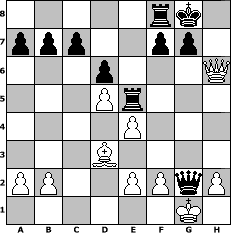 Partie-Notation im PGN-Format [Event "80 Jahre Weltmeister Max Euwe"] [Site "www.mySchach.de"] [Date "2015.07.20"] [Round "1"] [White "miu"] [Black "sprinterde"] [ECO "C01"] [WhitemyELO "1598"] [BlackmyELO "1727"] [Result "0-1"] [TimeControl "10/2592000"] [WhiteDays "89"] [BlackDays "88"] [MySchachNr "99784"] 1. e4 e6 2. d4 Nf6 3. Bg5 Be7 4. Nd2 Nc6 5. c3 h6 6. Bh4 O-O 7. Bd3 Nh7 8. Bxe7 Qxe7 9. Rc1 e5 10. Ngf3 exd4 11. cxd4 d6 12. O-O Bg4 13. Nb3 Ng5 14. d5 Ne5 15. Nbd4 Nexf3+ 16. Nxf3 Nxf3+ 17. gxf3 Bh3 18. Qd2 Bxf1 19. Bxf1 Rac8 20. Bd3 Qh4 21. Kh1 Qf6 22. Rg1 Qxf3+ 23. Rg2 Rce8 24. Kg1 Re5 25. Qxh6 Qxg2+ 0-1 Stellungs-Notation im FEN-Format 5rk1/ppp2pp1/3p3Q/3Pr3/4P3/3B4/PP2PPqP/6K1 - - - 0 26 Geschlagene Figuren Weiss: Geschlagene Figuren Schwarz: Klicken Sie auf eine geschlagene Figur um den gewünschten Zug darzustellen!