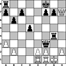 Partie-Notation im PGN-Format [Event "Winter 19/20"] [Site "www.mySchach.de"] [Date "2020.01.09"] [Round "1"] [White "gunni50"] [Black "sprinterde"] [ECO "C01"] [WhitemyELO "1233"] [BlackmyELO "1716"] [Result "0-1"] [TimeControl "10/2592000"] [WhiteDays "78"] [BlackDays "84"] [MySchachNr "116880"] 1. e4 e6 2. d4 Nf6 3. Nc3 Bb4 4. Bd2 Bxc3 5. Bxc3 Nxe4 6. Bd2 Qf6 7. Nf3 d5 8. Bd3 Nxd2 9. Qxd2 Nc6 10. O-O O-O 11. c3 Rd8 12. a3 Ne7 13. Rae1 b6 14. c4 Bb7 15. Qc2 dxc4 16. Bxc4 Bxf3 17. gxf3 Qxf3 18. Bd3 Rxd4 19. Bxh7+ Kf8 20. Be4 Qg4+ 21. Kh1 Nd5 22. Bxd5 exd5 23. Qh7 Qf3+ 24. Kg1 Rg4# 0-1 Stellungs-Notation im FEN-Format r4k2/p1p2ppQ/1p6/3p4/6r1/P4q2/1P2PP1P/4RRK1 - - - 4 25 Geschlagene Figuren Weiss: Geschlagene Figuren Schwarz: Klicken Sie auf eine geschlagene Figur um den gewünschten Zug darzustellen!