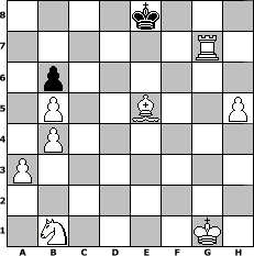 Partie-Notation im PGN-Format [Event "Aprilturnier"] [Site "www.mySchach.de"] [Date "2016.04.22"] [Round "1"] [White "S04boy"] [Black "augustus"] [ECO "A00"] [WhitemyELO "1167"] [BlackmyELO "1276"] [Result "1-0"] [TimeControl "10/1728000"] [WhiteDays "84"] [BlackDays "00"] [MySchachNr "103347"] 1. Nc3 e5 2. e4 Bb4 3. Nd5 Bc5 4. b4 Bb6 5. Nxb6 axb6 6. Bb2 d6 7. d4 Nc6 8. dxe5 Nxe5 9. f4 Bg4 10. Be2 Bxe2 11. Qxe2 Qf6 12. fxe5 dxe5 13. Qf3 Qd6 14. a3 Rd8 15. Rd1 Qe7 16. Rxd8+ Kxd8 17. Qd3+ Kc8 18. Nf3 f6 19. Nh4 Nh6 20. O-O g6 21. c4 Rd8 22. Qf3 f5 23. g3 Rf8 24. exf5 g5 25. f6 Rxf6 26. Qxf6 Qxf6 27. Rxf6 Ng8 28. Rf8+ Kd7 29. Rxg8 gxh4 30. Bxe5 hxg3 31. Bxg3 h6 32. Rh8 b5 33. cxb5 b6 34. Rxh6 Kd8 35. Rh7 Kc8 36. Rxc7+ Kd8 37. h4 Ke8 38. Rg7 Kf8 39. Be5 Ke8 40. h5 1-0 Stellungs-Notation im FEN-Format 4k3/6R1/1p6/1P2B2P/1P6/P7/8/1N4K1 - - - 0 40 Geschlagene Figuren Weiss: Geschlagene Figuren Schwarz: Klicken Sie auf eine geschlagene Figur um den gewünschten Zug darzustellen!