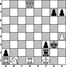 Partie-Notation im PGN-Format [Event "Herbst 2016"] [Site "www.mySchach.de"] [Date "2016.09.13"] [Round "1"] [White "lotchi"] [Black "Joschi"] [ECO "A00"] [WhitemyELO "1231"] [BlackmyELO "1538"] [Result "1/2-1/2"] [TimeControl "10/1728000"] [WhiteDays "104"] [BlackDays "120"] [MySchachNr "104932"] 1. Nc3 d5 2. d4 Nf6 3. Nf3 e6 4. Bg5 c5 5. e3 Nc6 6. dxc5 Bxc5 7. Bxf6 Qxf6 8. Bb5 Bb4 9. Bxc6+ bxc6 10. Qd2 O-O 11. a3 Bxc3 12. bxc3 Ba6 13. h4 Rfb8 14. Qd4 Qe7 15. Ne5 Qc7 16. a4 c5 17. Qf4 f6 18. Nd3 e5 19. Qh2 Qa5 20. Kd2 d4 21. Ra3 dxc3+ 22. Rxc3 Bxd3 23. cxd3 Qxa4 24. Rhc1 Rb2+ 25. Ke1 Qb4 26. Qh3 a5 27. Qd7 a4 28. Qd5+ Kf8 29. Qxa8+ Kf7 30. Qa7+ Kg6 31. Qxc5 Qxc5 32. Rxc5 a3 33. Ra1 a2 34. Rc1 Kf5 35. g3 Kg4 36. d4 exd4 37. exd4 Kf3 38. d5 Rxf2 39. Rc3+ Kg2 40. Rc1 Kxg3 41. Rd1 f5 42. d6 f4 43. d7 f3 44. d8=Q Re2+ 45. Kf1 Rf2+ 46. Ke1 Re2+ 47. Kf1 Rf2+ 48. Kg1 Rg2+ 49. Kh1 Rh2+ 50. Kg1 Rg2+ 51. Kf1 Rf2+ 1/2-1/2 Stellungs-Notation im FEN-Format 3Q4/6pp/8/8/7P/5pk1/p4r2/RN1R1K2 - - - 15 52 Geschlagene Figuren Weiss: ![]() ![]() ![]() ![]() ![]() ![]() ![]() ![]() ![]() ![]() ![]() ![]() ![]() ![]() ![]() Geschlagene Figuren Schwarz: ![]() ![]() ![]() ![]() ![]() ![]() ![]() ![]() ![]() ![]() ![]() ![]() ![]() ![]() ![]() Klicken Sie auf eine geschlagene Figur um den gewünschten Zug darzustellen!