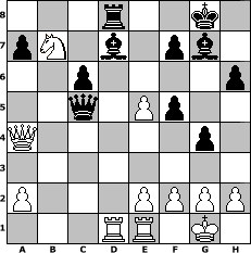 Partie-Notation im PGN-Format [Event "Fr"] [Site "www.mySchach.de"] [Date "2008.02.07"] [Round "2"] [White "UPS"] [Black "schobu2001"] [ECO "B23"] [WhitemyELO "1591"] [BlackmyELO "1545"] [Result "1-0"] [TimeControl "10/2592000"] [WhiteDays "78"] [BlackDays "90"] [MySchachNr "42451"] 1. e4 c5 2. Nc3 Nc6 3. Nf3 g6 4. Bb5 Bg7 5. Nd5 e6 6. Bxc6 bxc6 7. Ne3 Ne7 8. O-O d5 9. d3 Rb8 10. Rb1 Ba6 11. c4 O-O 12. Qa4 Qb6 13. e5 Rfd8 14. Bd2 Nf5 15. Nxf5 exf5 16. Ba5 Qb7 17. Bxd8 Rxd8 18. Qa5 Qb6 19. Qa4 h6 20. b3 g5 21. Rfe1 Bc8 22. b4 g4 23. bxc5 Qxc5 24. Nd2 Qd4 25. Nb3 Qxd3 26. cxd5 Qxd5 27. Na5 Bd7 28. Rbd1 Qc5 29. Nb7 1-0 Stellungs-Notation im FEN-Format 3r2k1/pN1b1pb1/2p4p/2q1Pp2/Q5p1/8/P3PPPP/3RR1K1 - - - 5 29 Geschlagene Figuren Weiss: ![]() ![]() ![]() ![]() ![]() ![]() ![]() ![]() ![]() ![]() ![]() ![]() ![]() ![]() ![]() Geschlagene Figuren Schwarz: ![]() ![]() ![]() ![]() ![]() ![]() ![]() ![]() ![]() ![]() ![]() ![]() ![]() ![]() ![]() Klicken Sie auf eine geschlagene Figur um den gewünschten Zug darzustellen!