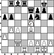 Partie-Notation im PGN-Format [Event "Hitzegewitter"] [Site "www.mySchach.de"] [Date "2015.08.15"] [Round "1"] [White "Joschi"] [Black "FrankB"] [ECO "C10"] [WhitemyELO "1596"] [BlackmyELO "1666"] [Result "1-0"] [TimeControl "10/864000"] [WhiteDays "30"] [BlackDays "00"] [MySchachNr "100089"] 1. e4 e6 2. d4 d5 3. Nc3 dxe4 4. Nxe4 Nf6 5. Bg5 Be7 6. Nxf6+ Bxf6 7. Bxf6 Qxf6 8. Nf3 O-O 9. Bc4 Nd7 10. O-O Rd8 11. c3 c5 12. dxc5 Nxc5 13. Qc2 a6 14. b4 Nd7 15. Bd3 h6 16. c4 b6 17. Be4 Rb8 18. Rad1 Qe7 19. a3 Nf6 20. Ne5 1-0 Stellungs-Notation im FEN-Format 1rbr2k1/4qpp1/pp2pn1p/4N3/1PP1B3/P7/2Q1PPPP/3R1RK1 - - - 2 20 Geschlagene Figuren Weiss: Geschlagene Figuren Schwarz: Klicken Sie auf eine geschlagene Figur um den gewünschten Zug darzustellen!