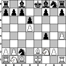 Partie-Notation im PGN-Format [Event "In Memorium Michael Knopf 2"] [Site "www.mySchach.de"] [Date "2013.04.10"] [Round "1"] [White "Knight"] [Black "sprinterde"] [ECO "C39"] [WhitemyELO "1229"] [BlackmyELO "1680"] [Result "0-1"] [TimeControl "10/2592000"] [WhiteDays "60"] [BlackDays "60"] [MySchachNr "87743"] 1. e4 e5 2. f4 exf4 3. Nf3 g5 4. h4 g4 5. Ne5 Qe7 6. d4 d6 7. Nxg4 Qxe4+ 8. Qe2 Qxe2+ 9. Bxe2 Nc6 10. d5 Nd4 11. Nf2 Nxc2+ 0-1 Stellungs-Notation im FEN-Format r1b1kbnr/ppp2p1p/3p4/3P4/5p1P/8/PPn1BNP1/RNB1K2R - KQkq - 0 12 Geschlagene Figuren Weiss: Geschlagene Figuren Schwarz: Klicken Sie auf eine geschlagene Figur um den gewünschten Zug darzustellen!