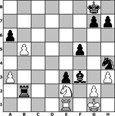 Partie-Notation im PGN-Format [Event "In Memorium Michael Knopf 4"] [Site "www.mySchach.de"] [Date "2015.04.10"] [Round "1"] [White "augustus"] [Black "miu"] [ECO "C00"] [WhitemyELO "1206"] [BlackmyELO "1590"] [Result "0-1"] [TimeControl "10/2592000"] [WhiteDays "115"] [BlackDays "120"] [MySchachNr "98914"] 1. e4 e6 2. Nc3 c5 3. Bc4 Nc6 4. Nf3 a6 5. d3 b5 6. Bb3 d6 7. Bg5 Be7 8. Bxe7 Ngxe7 9. O-O O-O 10. a3 Ra7 11. Ne2 d5 12. e5 Ng6 13. c3 Ngxe5 14. Nxe5 Nxe5 15. d4 cxd4 16. Nxd4 Rd7 17. Bc2 Bb7 18. Qh5 Ng6 19. Nf3 Qf6 20. Nd4 e5 21. Ne2 d4 22. Qg4 Rd6 23. Rad1 Rfd8 24. Bd3 Qh4 25. Qxh4 Nxh4 26. f3 f5 27. c4 e4 28. Ng3 exd3 29. cxb5 Re6 30. Rxd3 Re3 31. Rxe3 dxe3 32. Ne2 Rd2 33. Re1 Rxb2 34. h3 Bxf3 0-1 Stellungs-Notation im FEN-Format 6k1/6pp/p7/1P3p2/7n/P3pb1P/1r2N1P1/4R1K1 - - - 0 35 Geschlagene Figuren Weiss: ![]() ![]() ![]() ![]() ![]() ![]() ![]() ![]() ![]() ![]() ![]() ![]() ![]() ![]() ![]() Geschlagene Figuren Schwarz: ![]() ![]() ![]() ![]() ![]() ![]() ![]() ![]() ![]() ![]() ![]() ![]() ![]() ![]() ![]() Klicken Sie auf eine geschlagene Figur um den gewünschten Zug darzustellen!
