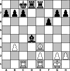 Partie-Notation im PGN-Format [Event "Herbst 2016"] [Site "www.mySchach.de"] [Date "2016.09.13"] [Round "1"] [White "Knight"] [Black "Steffi"] [ECO "C65"] [WhitemyELO "1133"] [BlackmyELO "1557"] [Result "0-1"] [TimeControl "10/1728000"] [WhiteDays "60"] [BlackDays "49"] [MySchachNr "104887"] 1. e4 e5 2. Nf3 Nc6 3. Bb5 Nf6 4. Nc3 d6 5. d4 exd4 6. Nxd4 Bd7 7. O-O Ne5 8. Bxd7+ Qxd7 9. f4 Nc4 10. e5 dxe5 11. fxe5 Nd5 12. Nxd5 Qxd5 13. Re1 O-O-O 14. c3 Nxe5 15. Bf4 f6 16. b3 Bc5 17. Be3 Rhe8 18. c4 Nxc4 19. bxc4 Qxc4 20. Rc1 Qd5 21. Qb3 Qxb3 22. axb3 Bxd4 0-1 Stellungs-Notation im FEN-Format 2krr3/ppp3pp/5p2/8/3b4/1P2B3/4P1PP/2R1R1K1 - - - 0 23 Geschlagene Figuren Weiss: ![]() ![]() ![]() ![]() ![]() ![]() ![]() ![]() ![]() ![]() ![]() ![]() ![]() ![]() ![]() Geschlagene Figuren Schwarz: ![]() ![]() ![]() ![]() ![]() ![]() ![]() ![]() ![]() ![]() ![]() ![]() ![]() ![]() ![]() Klicken Sie auf eine geschlagene Figur um den gewünschten Zug darzustellen!