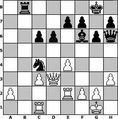 Partie-Notation im PGN-Format [Event "Sommerschach 2009"] [Site "www.mySchach.de"] [Date "2009.06.09"] [Round "2"] [White "Andreas"] [Black "murphy12"] [ECO "B06"] [WhitemyELO "1541"] [BlackmyELO "1636"] [Result "0-1"] [TimeControl "10/864000"] [WhiteDays "04"] [BlackDays "10"] [MySchachNr "56481"] 1. e4 g6 2. d4 c5 3. Nf3 Bg7 4. c3 cxd4 5. Nxd4 Nc6 6. Nxc6 bxc6 7. Bc4 Qc7 8. O-O Nf6 9. Re1 d6 10. Bf4 Nh5 11. Be3 O-O 12. Nd2 Rb8 13. Bb3 a5 14. Nc4 Ba6 15. Nd2 a4 16. Bxa4 Rxb2 17. Qc1 Rfb8 18. Bb3 Rxd2 19. Qxd2 Nf6 20. Bh6 Bh8 21. h3 Nd7 22. Rac1 Qa5 23. Qf4 Ne5 24. Re3 Bf6 25. Qg3 Bc4 26. Bxc4 Nxc4 27. Re2 Qh5 28. Qd3 Qxh6 0-1 Stellungs-Notation im FEN-Format 1r4k1/4pp1p/2pp1bpq/8/2n1P3/2PQ3P/P3RPP1/2R3K1 - - - 0 29 Geschlagene Figuren Weiss: Geschlagene Figuren Schwarz: Klicken Sie auf eine geschlagene Figur um den gewünschten Zug darzustellen!