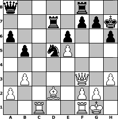 Partie-Notation im PGN-Format [Event "Mannschaftsturnier der letzen Mohikan3er"] [Site "www.mySchach.de"] [Date "2018.06.01"] [Round "1"] [White "HenrySchinasky"] [Black "pepo47"] [ECO "D30"] [WhitemyELO "2140"] [BlackmyELO "2099"] [Result "1/2-1/2"] [TimeControl "10/2592000"] [WhiteDays "87"] [BlackDays "85"] [MySchachNr "112274"] 1. d4 d5 2. c4 e6 3. Nf3 c6 4. Nc3 Nf6 5. e3 Nbd7 6. Qc2 Bd6 7. Be2 O-O 8. O-O dxc4 9. Bxc4 a6 10. Bd2 c5 11. Bd3 cxd4 12. exd4 h6 13. Rac1 b6 14. Ne4 Nxe4 15. Bxe4 Ra7 16. h3 Nf6 17. Bc6 Bb7 18. Ne5 Ba8 19. Bxa8 Qxa8 20. Qb3 Nd5 21. Qf3 Bxe5 22. dxe5 Rd7 23. Qg4 Kh8 24. Qh5 Kh7 25. b3 b5 26. Qf3 1/2-1/2 Stellungs-Notation im FEN-Format q4r2/3r1ppk/p3p2p/1p1nP3/8/1P3Q1P/P2B1PP1/2R2RK1 - - - 1 26 Geschlagene Figuren Weiss: Geschlagene Figuren Schwarz: Klicken Sie auf eine geschlagene Figur um den gewünschten Zug darzustellen!