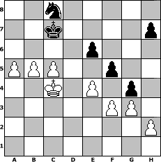 Partie-Notation im PGN-Format [Event "Dabei ist alles 6"] [Site "www.mySchach.de"] [Date "2009.03.21"] [Round "1"] [White "SlowBrain"] [Black "Naunhofer"] [ECO "B54"] [WhitemyELO "1403"] [BlackmyELO "1559"] [Result "1/2-1/2"] [TimeControl "10/864000"] [WhiteDays "10"] [BlackDays "10"] [MySchachNr "54090"] 1. e4 c5 2. Nf3 d6 3. d4 cxd4 4. Nxd4 Nc6 5. Nc3 a6 6. Be3 e6 7. Qd2 Nf6 8. f3 Qc7 9. O-O-O Be7 10. a3 Bd7 11. Be2 b5 12. Ncxb5 axb5 13. Nxb5 Qb8 14. Nxd6+ Bxd6 15. Qxd6 Qxd6 16. Rxd6 O-O 17. Bb5 Ne5 18. Be2 Rfc8 19. Rhd1 Rc6 20. Rxc6 Bxc6 21. Bd4 Ned7 22. Bxf6 Nxf6 23. Bc4 Kf8 24. Kb1 Ke7 25. Ka2 Nd7 26. b4 Ba4 27. Bb3 Nb6 28. Bxa4 Rxa4 29. Kb3 Ra7 30. c4 Rd7 31. Rxd7+ Kxd7 32. c5 Nc8 33. Kc4 Kc6 34. b5+ Kc7 35. a4 g5 36. g3 f5 37. a5 g4 1/2-1/2 Stellungs-Notation im FEN-Format 2n5/2k4p/4p3/PPP2p2/2K1P1p1/5PP1/7P/8 - - - 0 38 Geschlagene Figuren Weiss: Geschlagene Figuren Schwarz: Klicken Sie auf eine geschlagene Figur um den gewünschten Zug darzustellen!