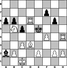 Partie-Notation im PGN-Format [Event "9er"] [Site "www.mySchach.de"] [Date "2010.05.03"] [Round "1"] [White "Lohl"] [Black "Hobbykegler"] [ECO "B27"] [WhitemyELO "1566"] [BlackmyELO "1070"] [Result "1-0"] [TimeControl "10/2592000"] [WhiteDays "30"] [BlackDays "26"] [MySchachNr "65300"] 1. e4 c5 2. Nf3 b6 3. d4 Nc6 4. d5 Nd4 5. Nfd2 e5 6. c3 Nc6 7. dxc6 dxc6 8. Nc4 Be6 9. Qxd8+ Rxd8 10. Nxe5 Nf6 11. Nxc6 Nxe4 12. Nxd8 Kxd8 13. Na3 h5 14. f3 Nd6 15. Bf4 Nf5 16. O-O-O+ Ke8 17. Bb5+ Ke7 18. Rhe1 Kf6 19. Rd8 h4 20. Bd3 Bxa2 21. Ree8 Nd6 22. Bxd6 Bxd6 23. Rxd6+ Kg5 24. Re5+ Kf4 25. Re4+ Kf5 26. Re8+ Kf4 27. Rxh8 g6 28. Rxh4+ Ke5 29. Nb5 a6 30. f4# 1-0 Stellungs-Notation im FEN-Format 8/5p2/pp1R2p1/1Np1k3/5P1R/2PB4/bP2P1PP/2K5 - - - 0 30 Geschlagene Figuren Weiss: Geschlagene Figuren Schwarz: Klicken Sie auf eine geschlagene Figur um den gewünschten Zug darzustellen!