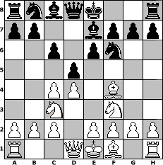 Partie-Notation im PGN-Format [Event "Herbst 2016"] [Site "www.mySchach.de"] [Date "2016.09.13"] [Round "1"] [White "nomasa"] [Black "Steffi"] [ECO "A13"] [WhitemyELO "1511"] [BlackmyELO "1557"] [Result "0-1"] [TimeControl "10/1728000"] [WhiteDays "00"] [BlackDays "18"] [MySchachNr "104900"] 1. c4 e6 2. d4 d5 3. Nf3 Nf6 4. Nc3 Be7 5. Bf4 c6 0-1 Stellungs-Notation im FEN-Format rnbqk2r/pp2bppp/2p1pn2/3p4/2PP1B2/2N2N2/PPP1PPPP/R2QKB1R - KQkq - 0 6 Geschlagene Figuren Weiss: ![]() ![]() ![]() ![]() ![]() ![]() ![]() ![]() ![]() ![]() ![]() ![]() ![]() ![]() ![]() Geschlagene Figuren Schwarz: ![]() ![]() ![]() ![]() ![]() ![]() ![]() ![]() ![]() ![]() ![]() ![]() ![]() ![]() ![]() Klicken Sie auf eine geschlagene Figur um den gewünschten Zug darzustellen!